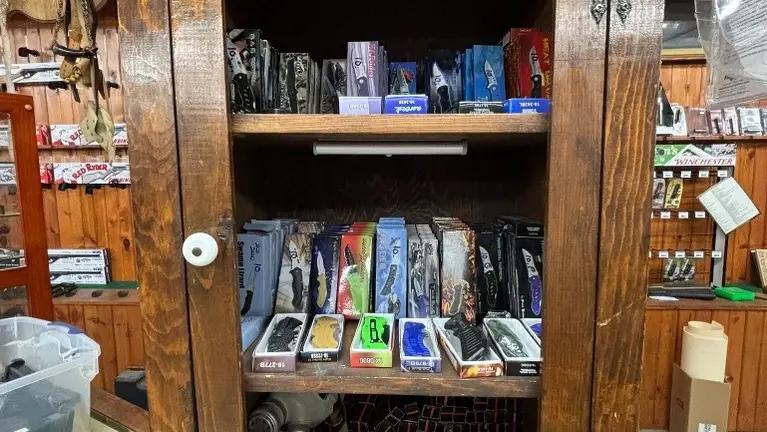 Includes: Techno Hunt System; Winchester 60 gun safe; Winchester 36 gun safe; 8 lighted showcases; 10 display cabinets; 10 double sided racks; 2 Living Stream Chiller bait tanks; cricket cage; 2 refrigerators; 2 coolers; security system; MTD snow blower; Blackstone griddle; gas smoker; ice chest; office equipment; hand tools, tools boxes; bow string jig; 2 bow presses; wild game mounts; nice inventory of Ammo, 3 Harpers Ferry 1860 muzzle loaders; Red Ryder BB guns, deer stands, crossbows, scope mounts; scope rings; scopes; primers; choke tubs; Rafter fishing poles; range finders; rifle sights; gun cases; boots, traps fishing lures; pocket knives; Much, Much More.