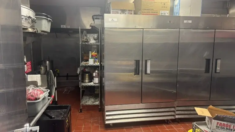 - Standalone, fully built-out restaurant with strong visibility, dedicated parking, and seating for ~32. Fully equipped kitchen includes hood system, 6-burner stove, deep fryer, grease trap, prep stations, and substantial cold storage (3 walk-ins + 2 additional freezers). Includes beverage fridge, ice maker, rice cooker, microwaves, shelving, prep tables, POS system, and all FF&E. Clean, well-maintained, turnkey setup ready for immediate operation with minimal transition, no additional buildout required.
