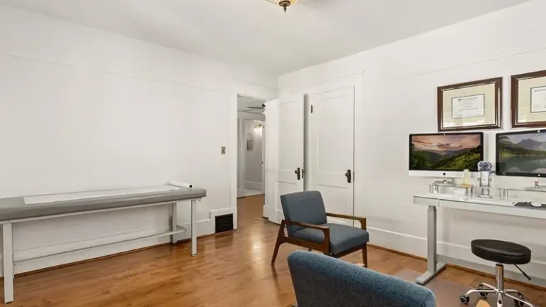 Located approximately 10 minutes from downtown San Diego, the clinic operates from a distinctive two-story Craftsman-style building that feels more like a welcoming home than a medical office. The facility includes three treatment rooms, three offices, two break areas, two bathrooms, a covered balcony, and storage space.