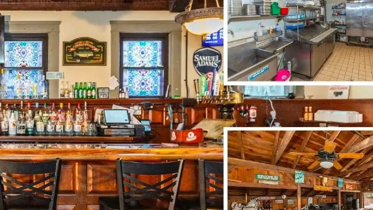 classic neighborhood Tavern been a restaurant for over 100 years, three full bars massive outdoor area with entertainment license, patio license, liquor license, includes cornhole courts covered outdoor seating for 55, outdoor area includes covered cooking area with pig roaster smoker flat top grill event grill to burner stove outdoor bar has seating for 25 ice bins TVs furniture covered carport includes pool table seating for 40 outdoor area as seating for 40 with four fire pits and a stone fireplace inside back room designed by world famous sculptor almond LaMontagne with a classic Tavern look full bar seating for 55 front room full bars seating for 35 Stonewall two fire places one wood stove one propane parking for 70 people two /three bedroom apartment with one bathroom wood floors we've hosted events and weddings for up to 200 people owner looking to relocate