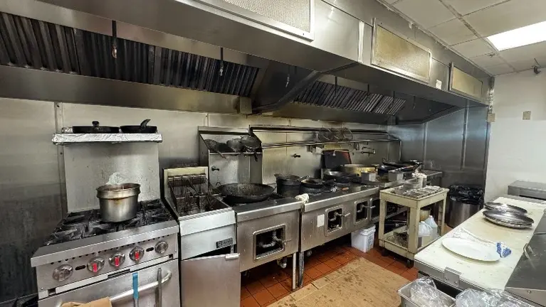 - Full kitchen with 16' hood with suppression system over fryers, woks and gas range, dishwasher walk in cooler, prep and storage area. Front of house consists of 4tops, booth and banquet seating.