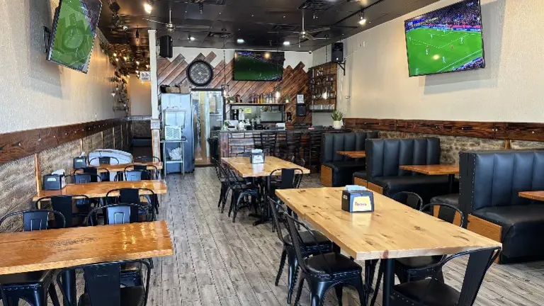 Grease trap Hood system, fryer, electric oven, blenders, cabinets, scale, prep tables, Reach-in cooler and freezer, Walk-in Cooler, 10 indoor tables, +30 chairs, Bar counter with stools for drink service, Serviceware, Flatware, 3-compartment sink, dishwasher. Tv Screens for the sports lovers. No rental equipment.