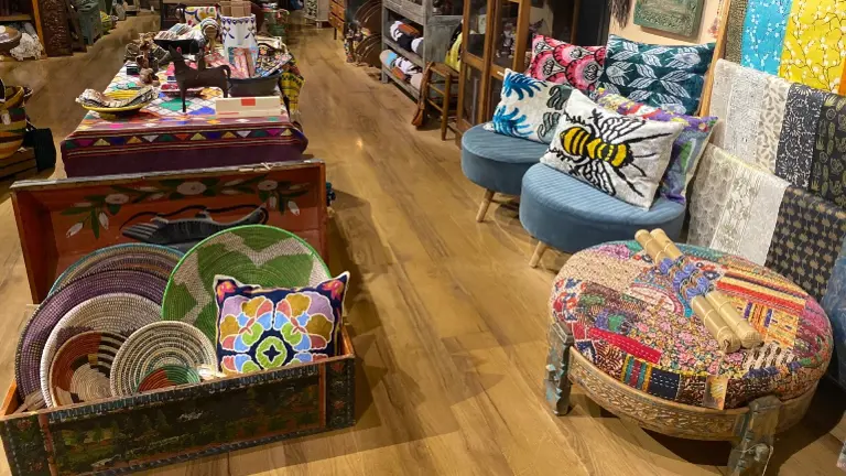 Inventory: ~$100,000 in curated folk art, antiques, and sustainable products.