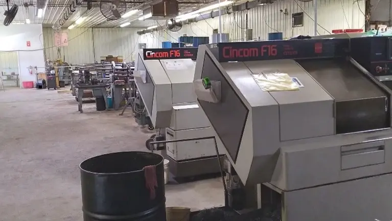 - 13 Acme gridleys / 5 Brown & Sharps - 2 Hardinge Lathes - 1 Logan Lathe - 1 Horizontal Mill 1 Clausing Mill-4 Barker Milling,Drilling Machines- 1 Heald ID Grinder-1 Cincinnati centerless- 2 Citizen Twin Turrets Swiss style CNC Lathes F16 mod with Barr Feeders. 2 Chip spinners-2 Fork Trucks - Drill Press - Along with many other support equipment and tooling.