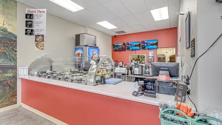 - Generous common-area parking facilities, tables and chairs for dine-in, lounge/waiting area for takeaway, fully equipped service counter and kitchen facilities, manager's office. Over $200K invested in build-out and start-up.