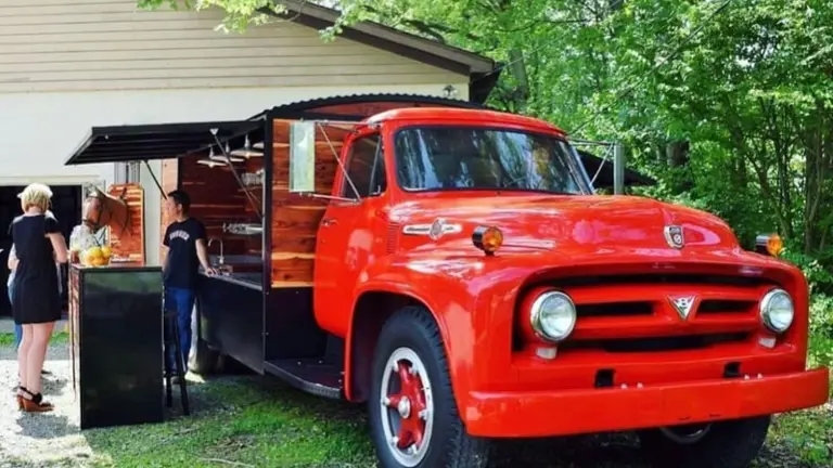 "Big Red" our 1953 Ford. Big Red is fitted with everything needed to drive up, set up and serve any number of guests at your unique vintage event. Comfortable and adaptable to small intimate settings or large scale events. Our staff take everything into account to ensure we deliver a fun, memorable and unique experience for everyone we serve.