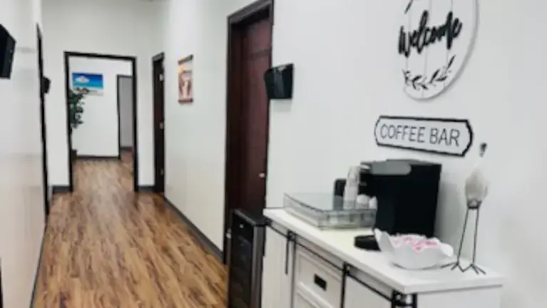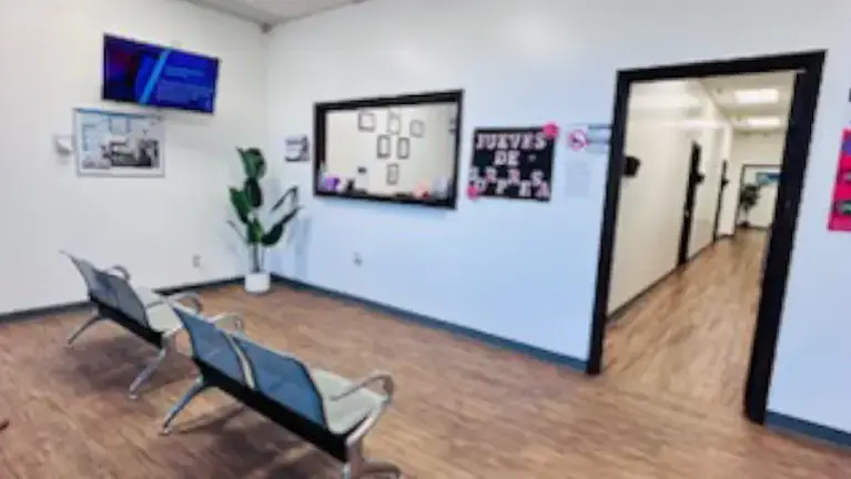 Medical clinic in operation with approximately 2,500 sq ft, located in Conroe, TX. Well-maintained facility featuring front desk/reception area, waiting room, approximately 4 exam rooms, provider office, laboratory area, staff break room, 2 restrooms, hallways, and additional open space in the back.