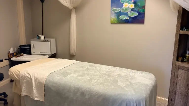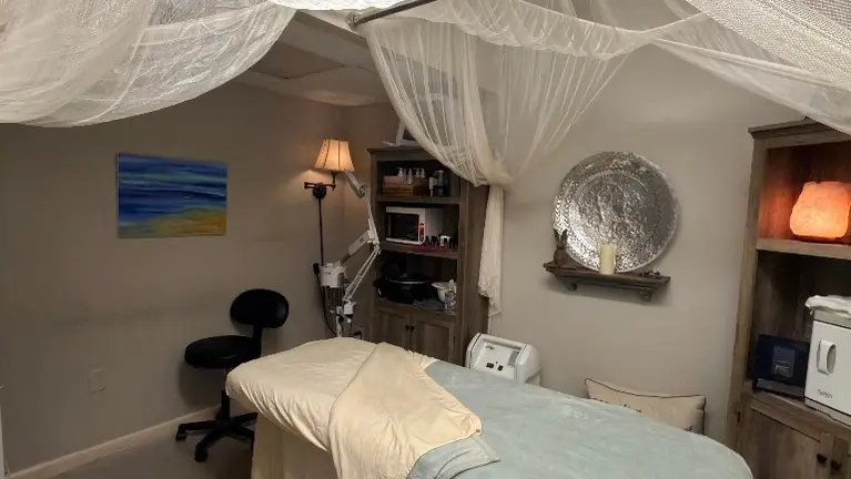 - 2 fully equipped private treatment rooms with professional massage tables, heating equipment, and luxury canopy draping. Beauty room with complete facial and skincare setup including microdermabrasion and oxygen facial equipment. Furnished waiting area with professional reception desk. Full doTERRA essential oil collection and skincare product inventory included.