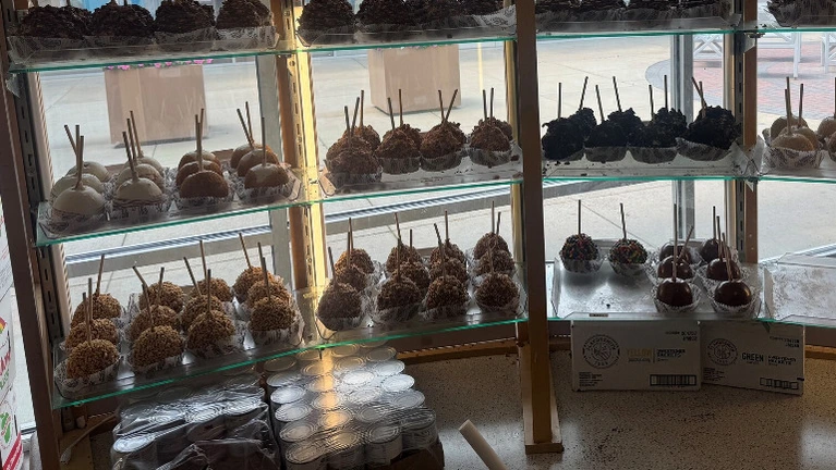 - Apple Radius, Two Climatized Candy Counters, Caramel Stove and Kettle, Two Professional Refrigerators (True) and Freezer, Two Professional Tempering Machines, Espresso Machine, 6 Stoelting Yogurt Machines (12 Flavors) and Large Refrigerated Toppings Bar with Sneeze-guard, Office with Security and many cameras, Tables, Chairs, Office and Safe, Mood