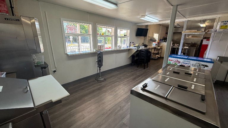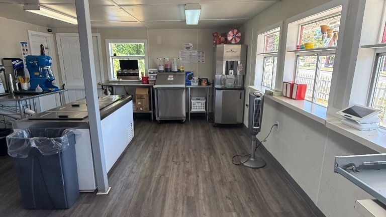 - Fully equipped shop featuring 30+ flavors of hard and soft serve with topping stations, dip chests, and a 9-flavor Electro Freeze machine. Includes grill, fryers, sandwich prep, industrial freezers/refrigerators, outdoor seating with painted picnic tables and Adirondack chair. Order printer and KDS system streamline service. A complete package to operate immediately.