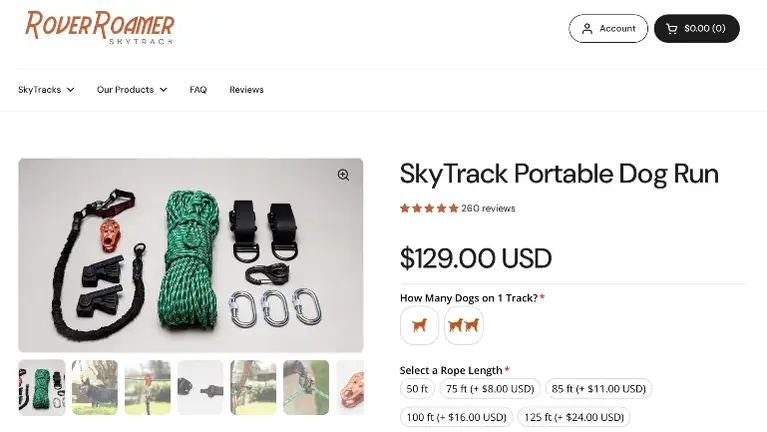 RoverRoamer SkyTrack offers premium dog run kits that distinguish themselves from low-cost, low-quality competitors through superior components and long-lasting durability. Our reviews speak for themselves. The products address the growing market need for secure pet containment solutions, particularly valuable for homes without existing fencing infrastructure.