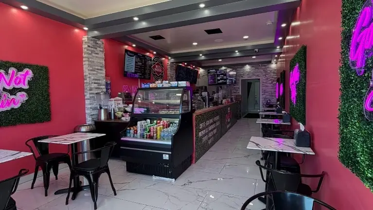 The welcoming 1,000 square foot space features cheerful decor, modern neon signage, wheelchair accessibility, and flexible seating arrangements. Outdoor patio seating and ample parking enhance customer convenience and capacity.