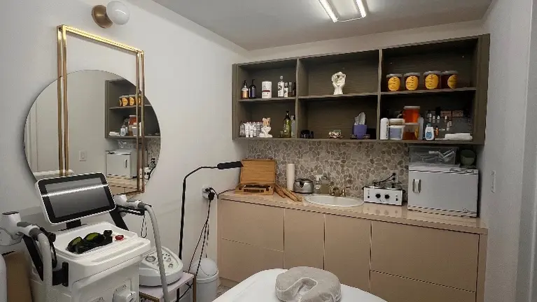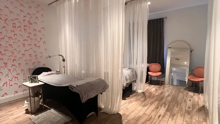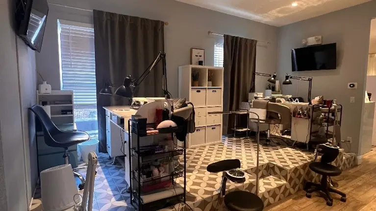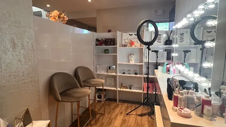 - Fully built-out, modern beauty salon with professional interior design. Includes multiple workstations for nails, lashes, brows, and massage, all fully equipped and operational.