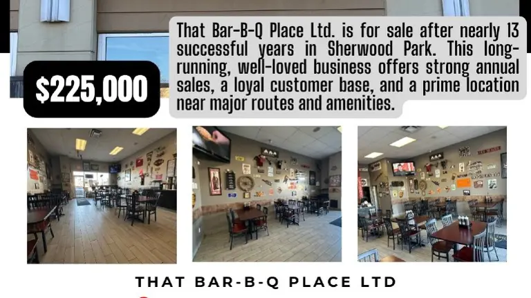 THAT BAR-B-Q PLACE LTD. IS FOR SALE! Successfully operating for nearly 13 years in Sherwood Park, Alberta, and continuously operated by the Owner and Pitmaster Bruce - who's ready to think about retirement! What an opportunity!
