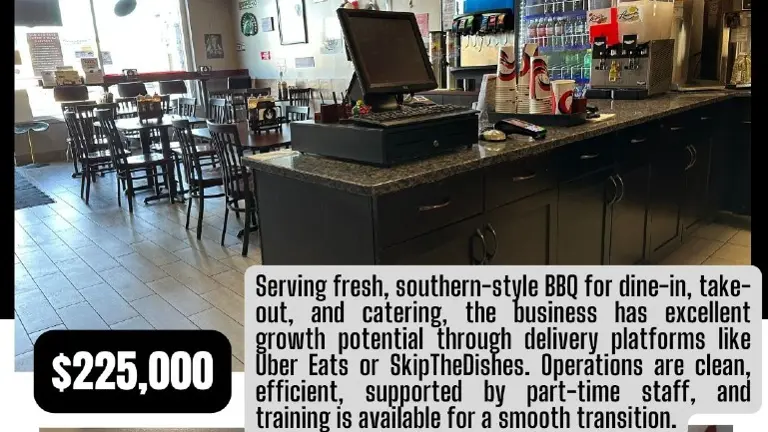 The owner Bruce can train a new owner for a smooth transition. INCREDIBLE BBQ, down-home, southern style comfort food, sold prepared fresh and sold to dine-in and take-out customers, with and catering also offered. Strong, loyal and repeat customer base. Can be further optimized by partnering with Uber Eats or Skip the Dishes - or both. Close to Yellowhead Trail, Broadmoor Boulevard, Costco and Millenium Place. Perfectly located in NW Sherwood Park near many other businesses and with great access and ample parking. Very clean and smooth operation. Part-time staff in place. AGLC liquor license in place - sales can be scaled and optimized if desired. Nearly $500,000 in annual sales volume for you to work with and grow! Here is your opportunity to get into the Sherwood Park, Alberta restaurant scene!