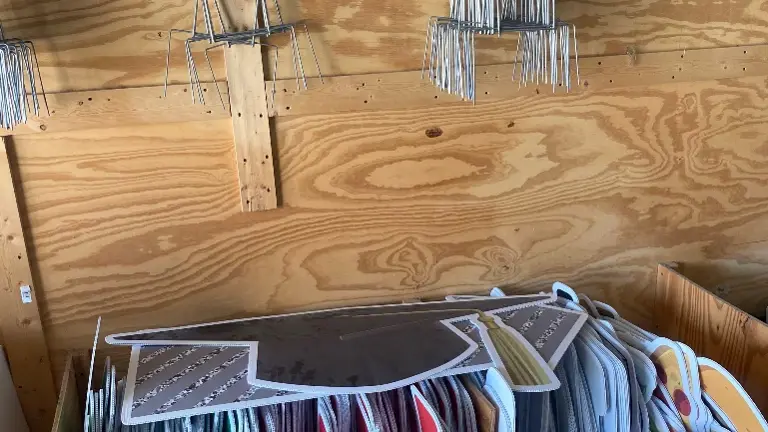 - All signs and stakes included. Storage shelf and plastic bins included. Metal shelving in pictures NOT included.