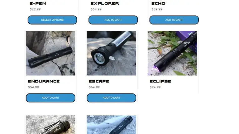 The product line includes high-quality, competitively priced flashlights, headlamps, accessories, and outdoor solutions.