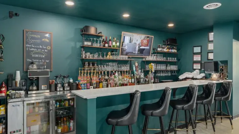 Upscale Dining & Bar Areas – Comfortable indoor and outdoor seating, fireplace in the dining room, and a quartz bar countertop for an elegant touch.