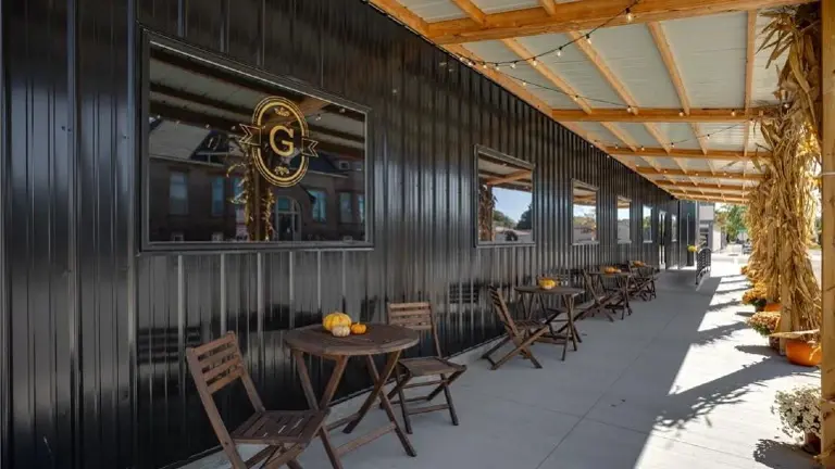 - This 2,000 sq. ft. new construction building offers modern amenities & high-end finishes. New Commercial Kitchen & Appliances – Fully equipped with fire suppression, stainless steel equipment, and top-of-the-line commercial appliances. Upscale Dining & Bar Areas – Comfortable indoor and outdoor seating, fireplace in the dining room, and a quartz bar countertop for an elegant touch. Drive-Up Window – Durable, Maintenance-Free Finishes – Polished concrete floors and low-maintenance exterior for long-term efficiency. New Furniture & Fixtures