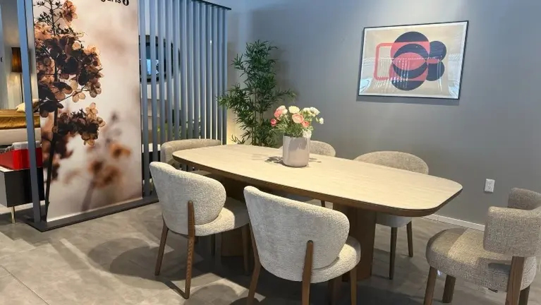 Curated Inventory: Extensive floor samples of Italian-made dining, living, and bedroom furniture.