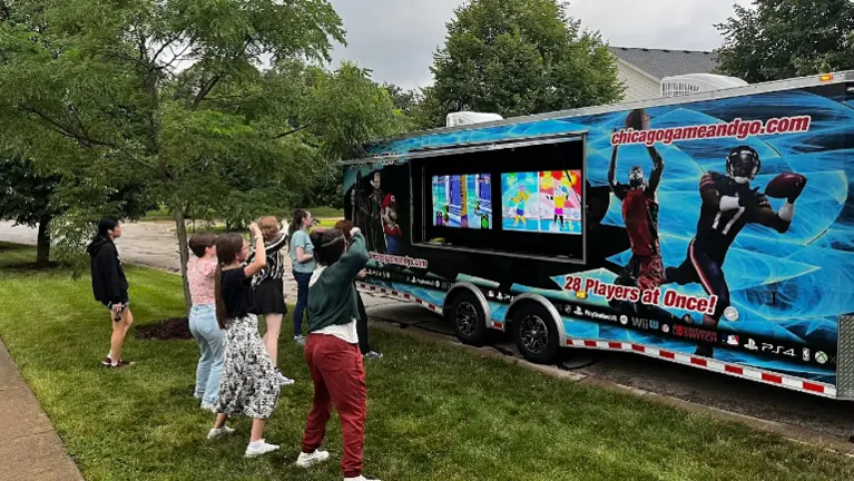 - Fully equipped turnkey mobile video game truck with stadium seating for 20+ and capacity for ~25–30 players. Includes modern consoles, large game library, HD screens, surround sound, LED lighting, and VR system. Fully mobile, no lease required, serving the Chicago area with an established customer base.