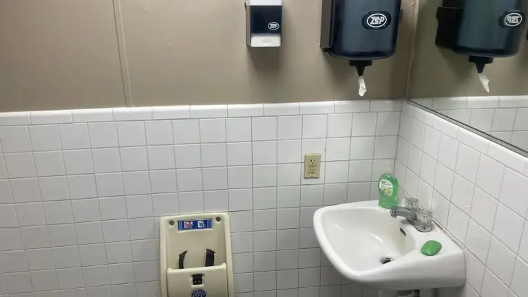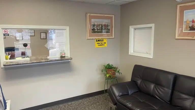 - The location is spacious office building, with a reception area and four separate rooms. The building also has a separate women's and men's restrooms.