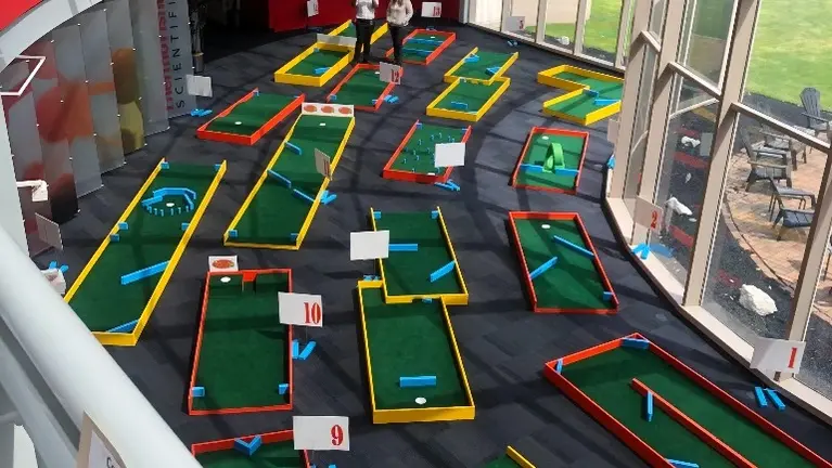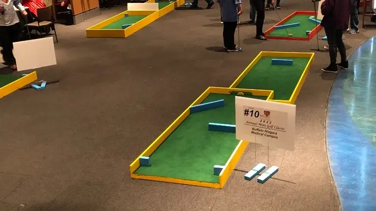 - This is truly a one-of-a-kind business model and competition is basically nonexistent. It is versatile to meet almost any clients' needs. We have set up in gyms, museums, businesses, outdoors, basically anywhere flat. We have run $1,000/foursome tournaments, proms, church events, family parties, events for individuals with special needs, and groups of guys just looking for fun. The course is bright, colorful, professional in appearance, and usually requires general maintenance periodically. has proven to be extremely durable.
