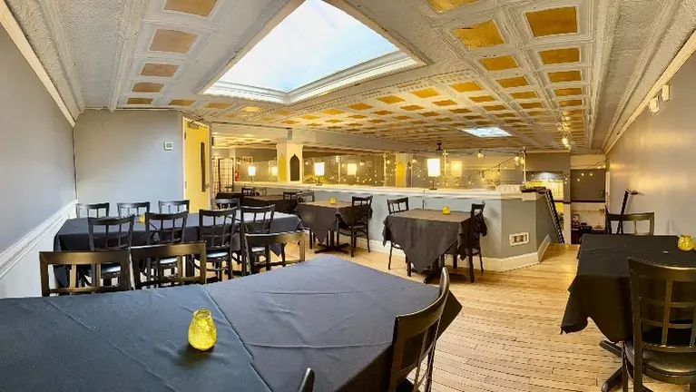 - ±4,285 SF second-generation restaurant space featuring high ceilings, skylights, bar area, commercial kitchen infrastructure (hood, grease trap), and a second-floor loft/private dining area. Includes access to a permitted ±3,072 SF fenced patio (under development). Located in a mixed-use building with nearby parking and strong visibility in a walkable downtown setting.