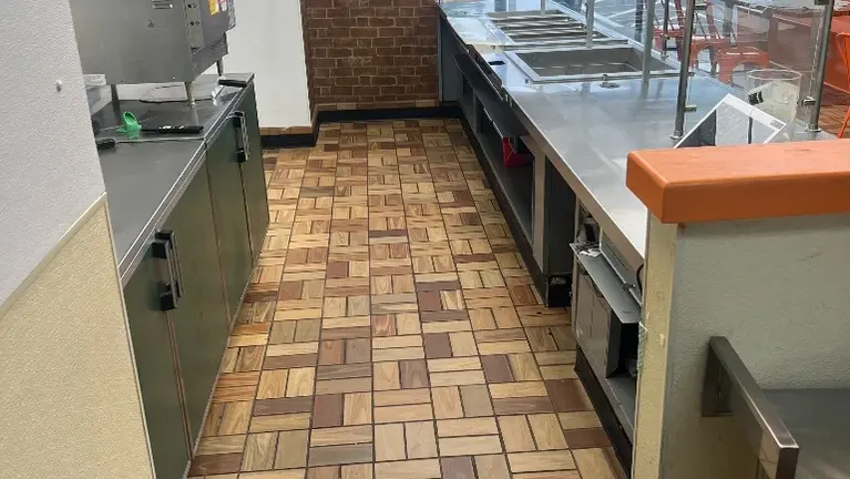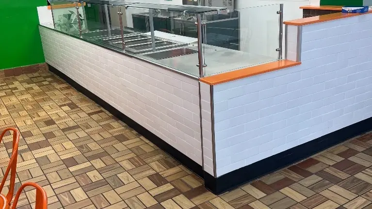 The setup works best for concepts that do not require heavy grease-producing cooking.