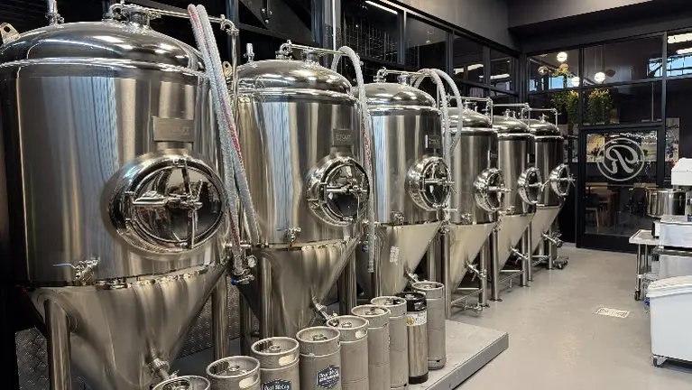 - The space is fully built out and turnkey with a complete brewhouse and restaurant setup. Features include stainless steel fermenters, a modern bar with TVs, refrigeration, sinks, and storage, plus two-level dining areas. The commercial kitchen includes a hood system, line equipment, prep space, dish area, a wood-fired pizza oven, and a walk-in cooler. All FF&E is included, from brewing and kitchen equipment to tables, chairs, and smallwares, allowing a new operator to launch without a heavy buildout.