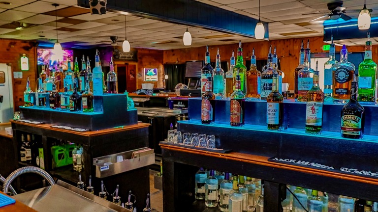 Spacious bar seats 20+, with 3 brand-new coolers, 3 liquor wells, and 3 POS stations