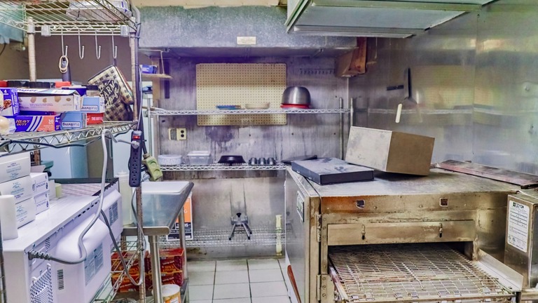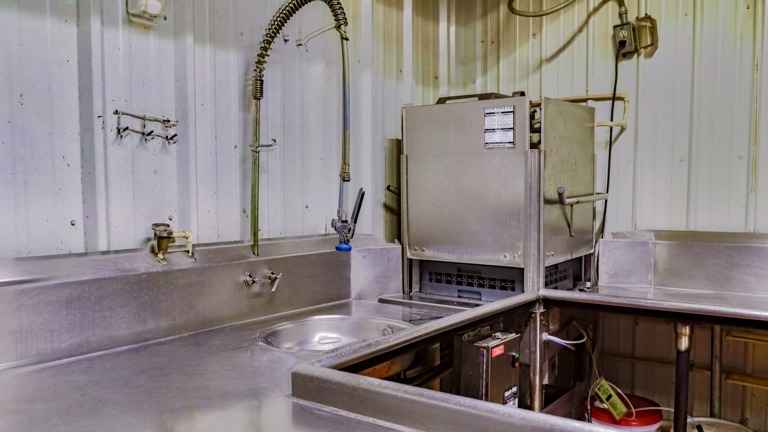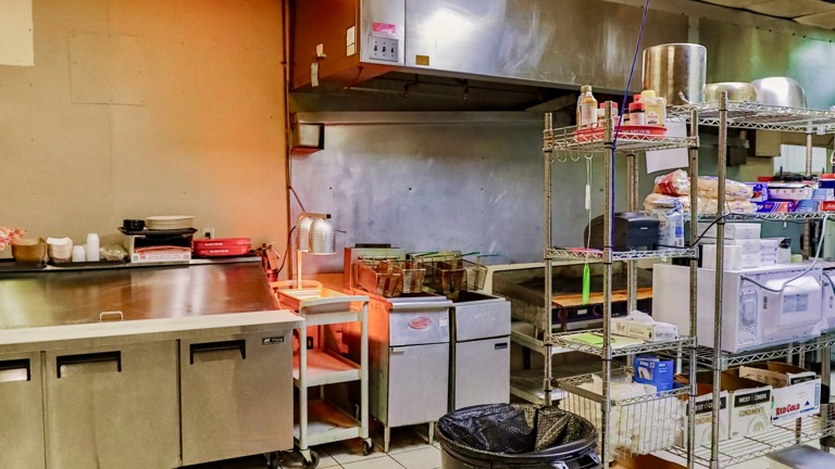 Vent-hood, prep racks, dish station, freezers, and more!