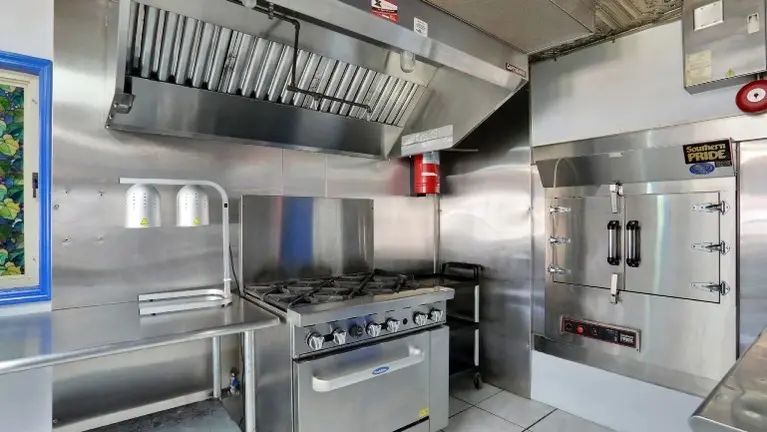 The interior offers ample space for dining and kitchen operations, ensuring a smooth workflow for a bustling restaurant environment.