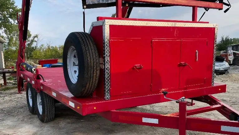 All hydraulic pumps and controls are located in a custom front mount tool box